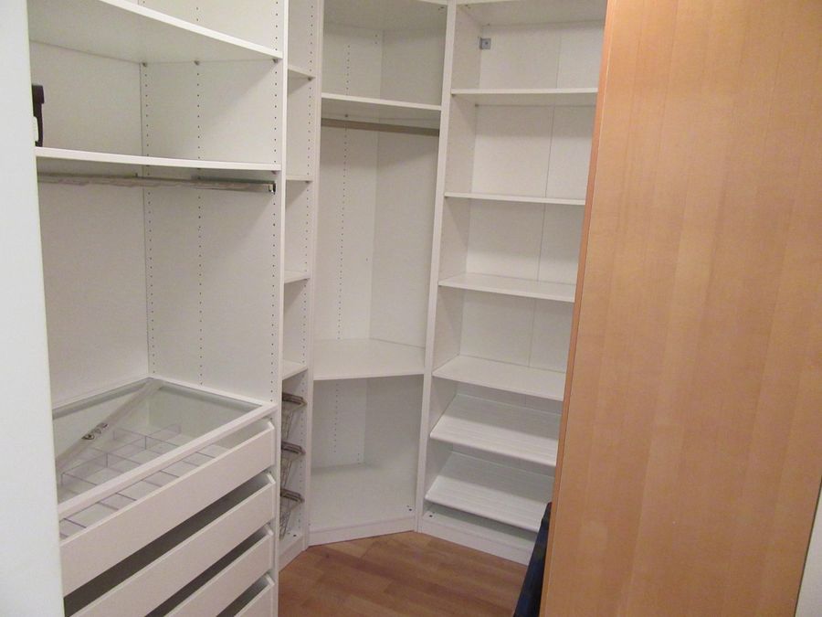 Schrankraum, Badezimmer mit Badewanne, Waschtisch und Waschmaschinenanschluss, WC mit Handwaschbecken,